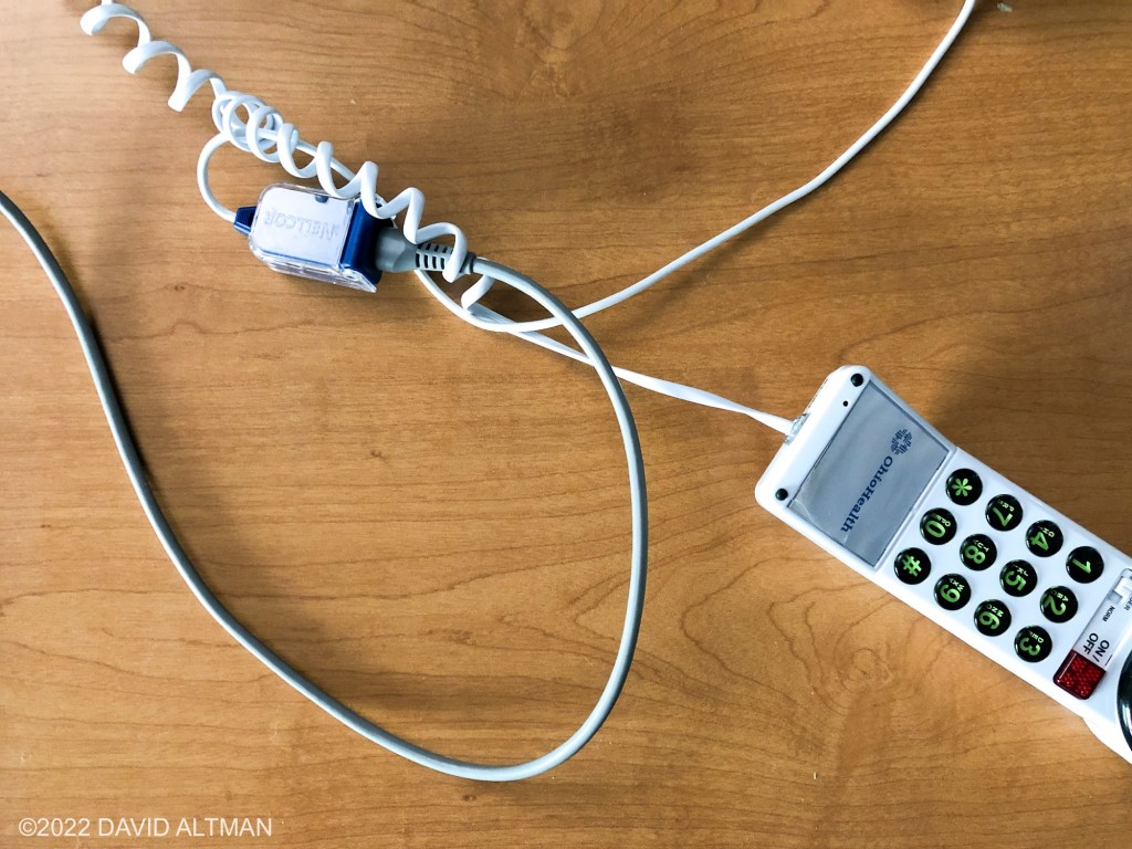 In patient rooms, some telephone handsets have two halves. One half is spiraled. The other half is flat.